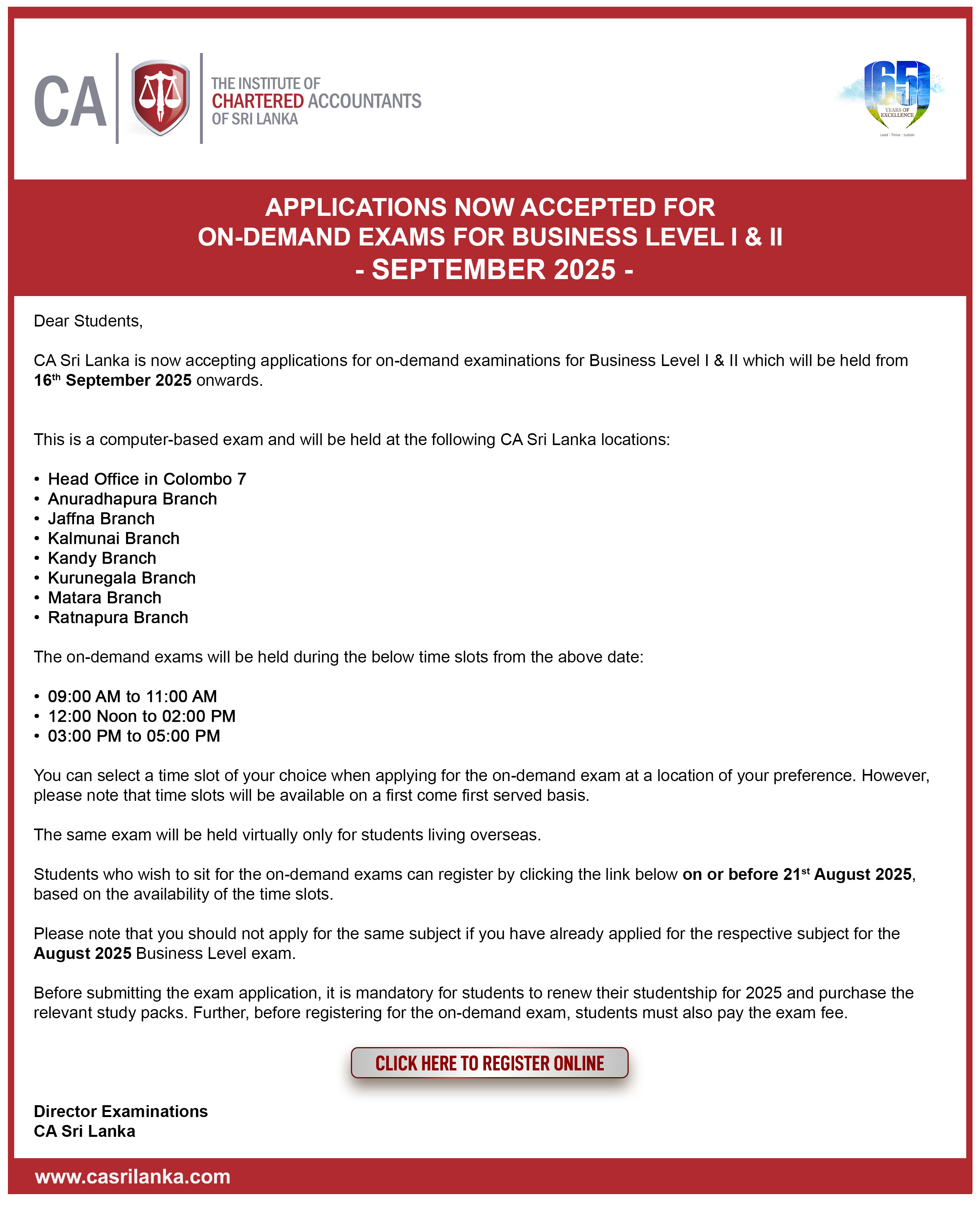 Business Level I&II - September 2025 - OnDemand Examination Notice