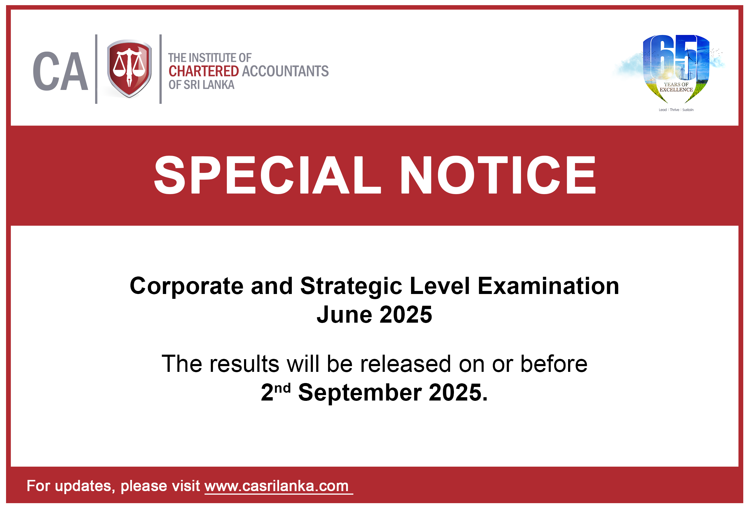 SPECIAL NOTICE - Corporate and Strategic Level Examination June 2025