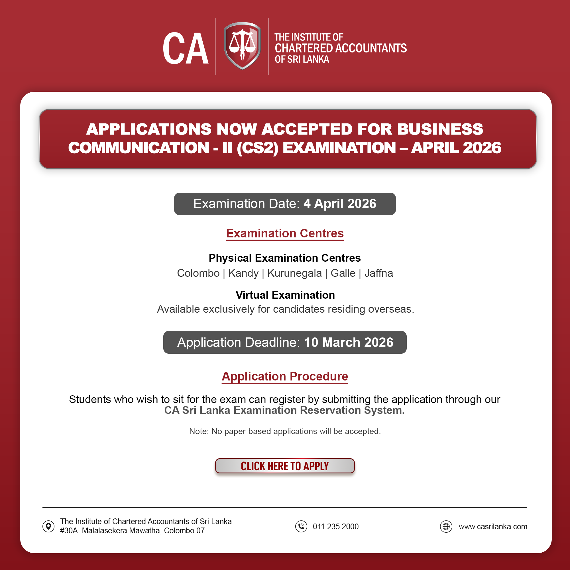 Application Notice - Business Communication CS2 - April 2026