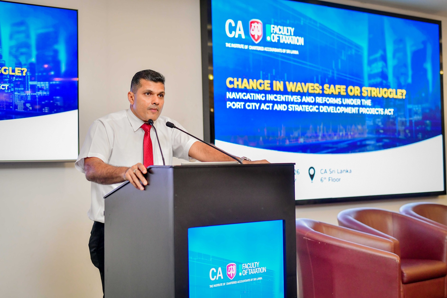The session brought together industry leaders and experts to shed light on the new rules governing the Colombo Port City and Strategic Development Projects Acts. Mr. Tishan Subasinghe, President of CA Sri Lanka, and Mr. Saman Srilal, Member of Council and Chairman of the Faculty of Taxation, were also present and shared their insights at the event.