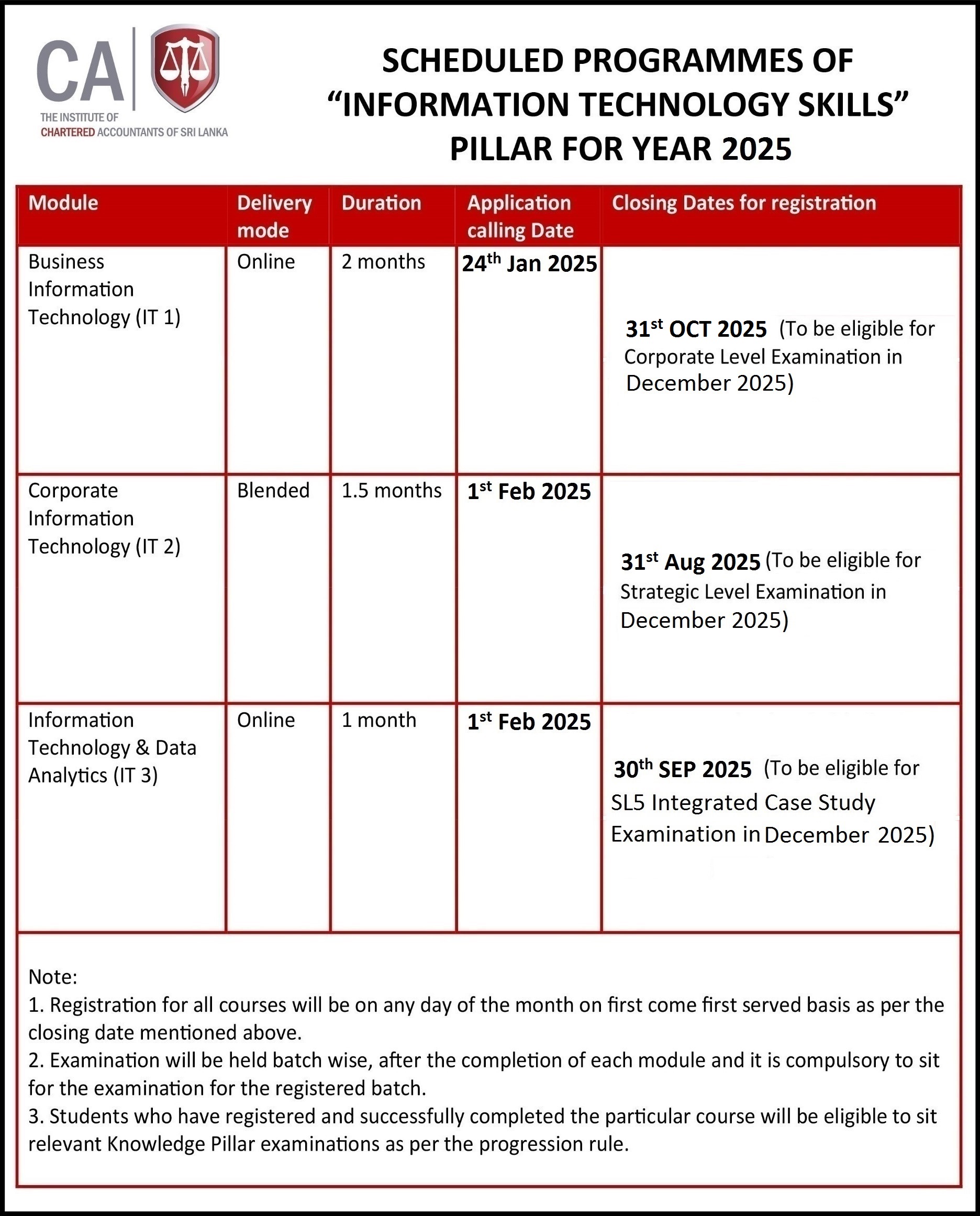Online registration facility is available under the student profile of the CA Sri Lanka website.