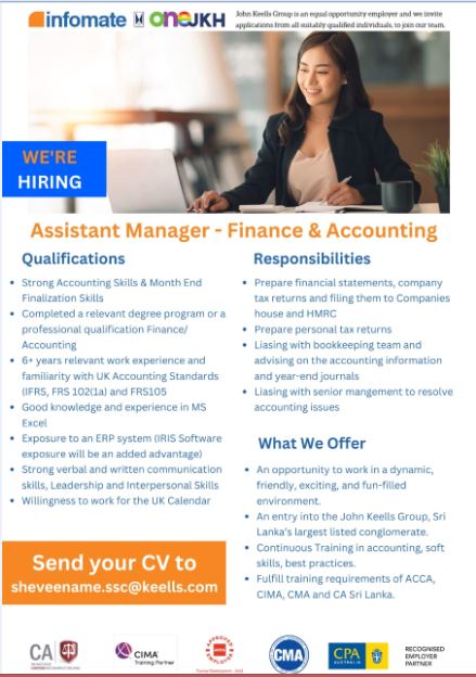 JRN_2736 : Assistant Manager-Finance & Accounting at Infomate (PVT) Ltd