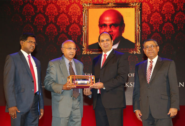 Mr. Bentotage Robert Lakshman Fernando being inducted to CA Sri Lanka Hall of Fame by Mr. Arjuna Herath, President – CA Sri Lanka. Secretary/CEO CA Sri Lanka Mr. Aruna Alwis and Past President CA Sri Lanka Mr. Reyaz Mihular also joined the presentation.