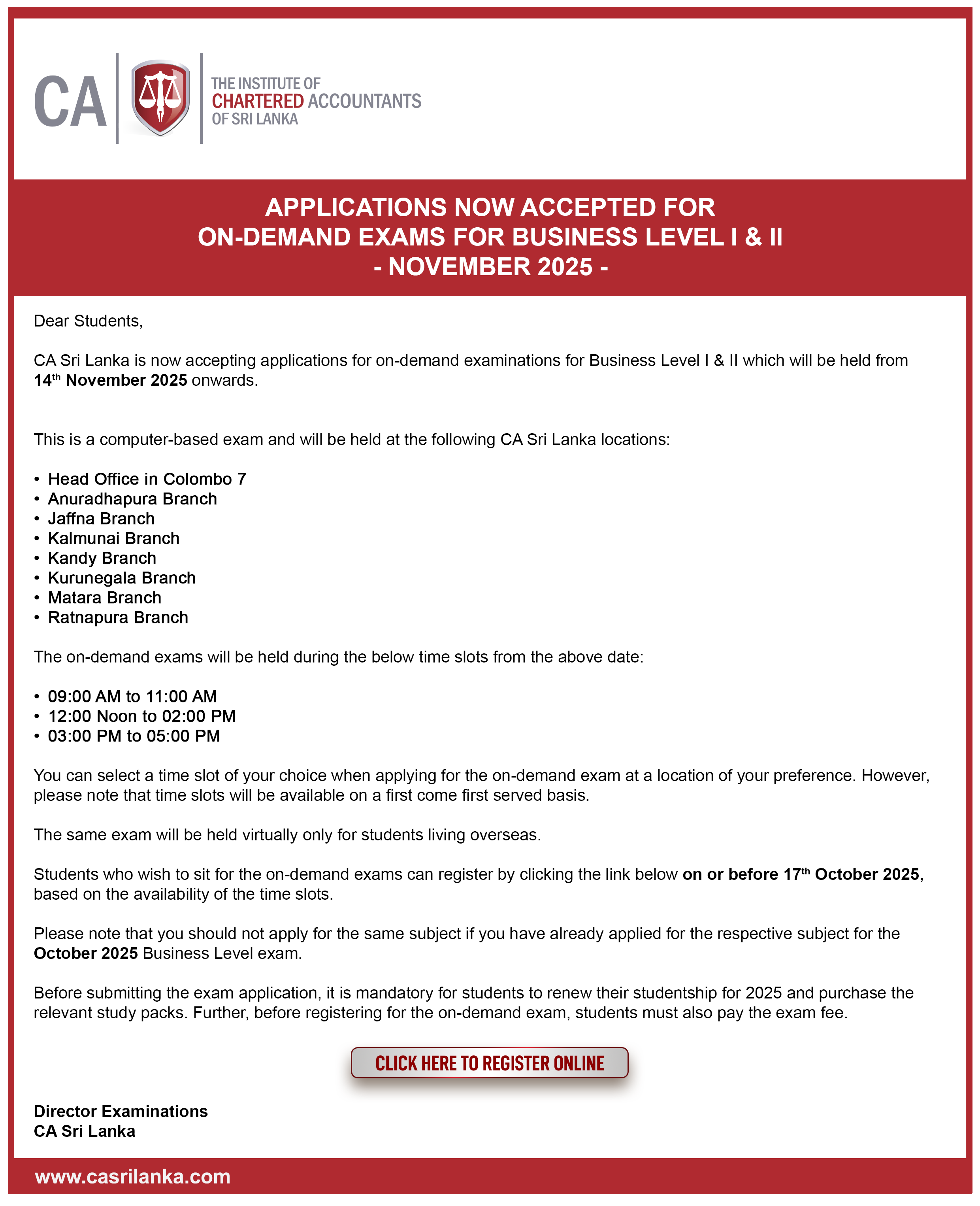Business Level I&II - November 2025 - OnDemand Application Notice