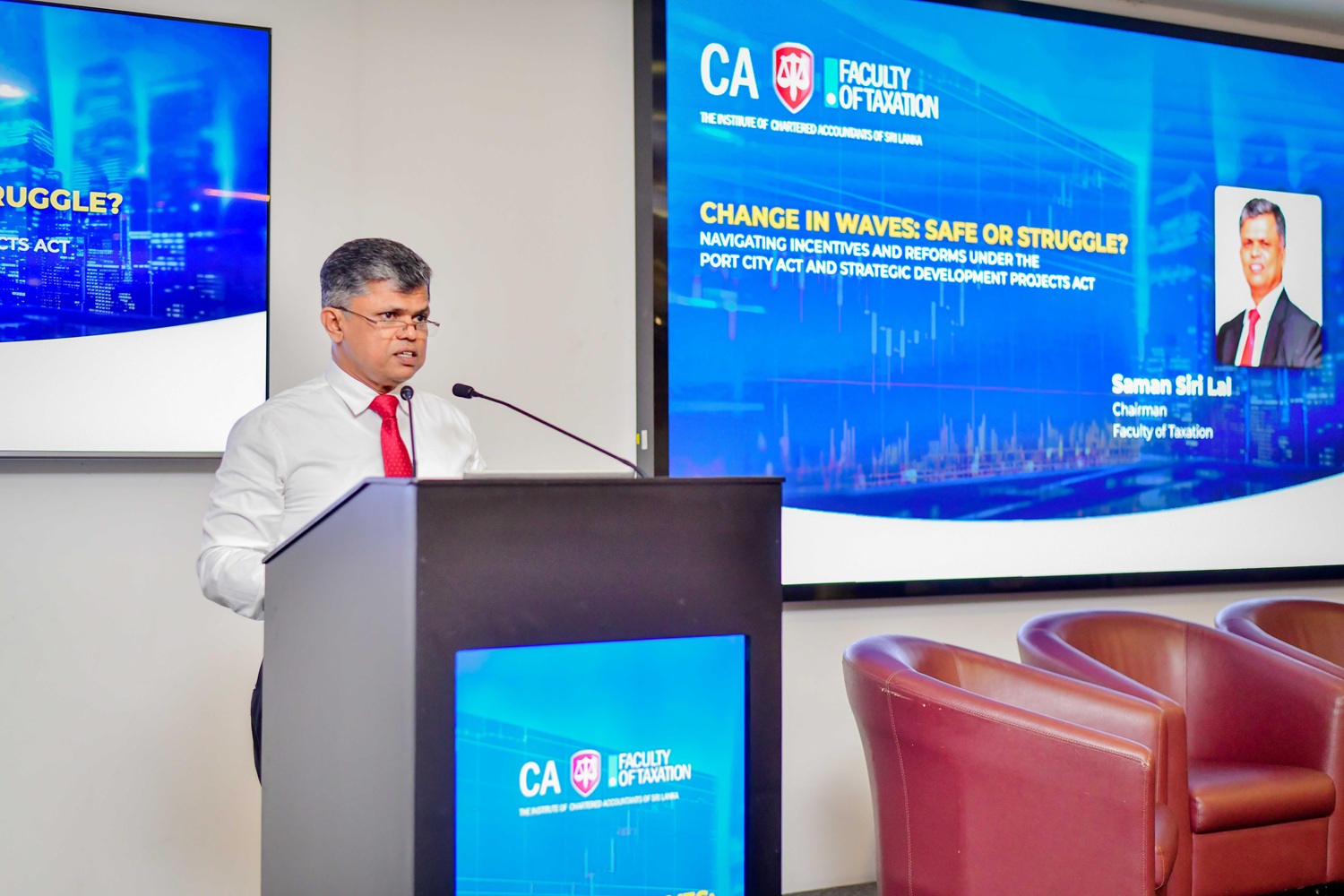 The session brought together industry leaders and experts to shed light on the new rules governing the Colombo Port City and Strategic Development Projects Acts. Mr. Tishan Subasinghe, President of CA Sri Lanka, and Mr. Saman Srilal, Member of Council and Chairman of the Faculty of Taxation, were also present and shared their insights at the event.