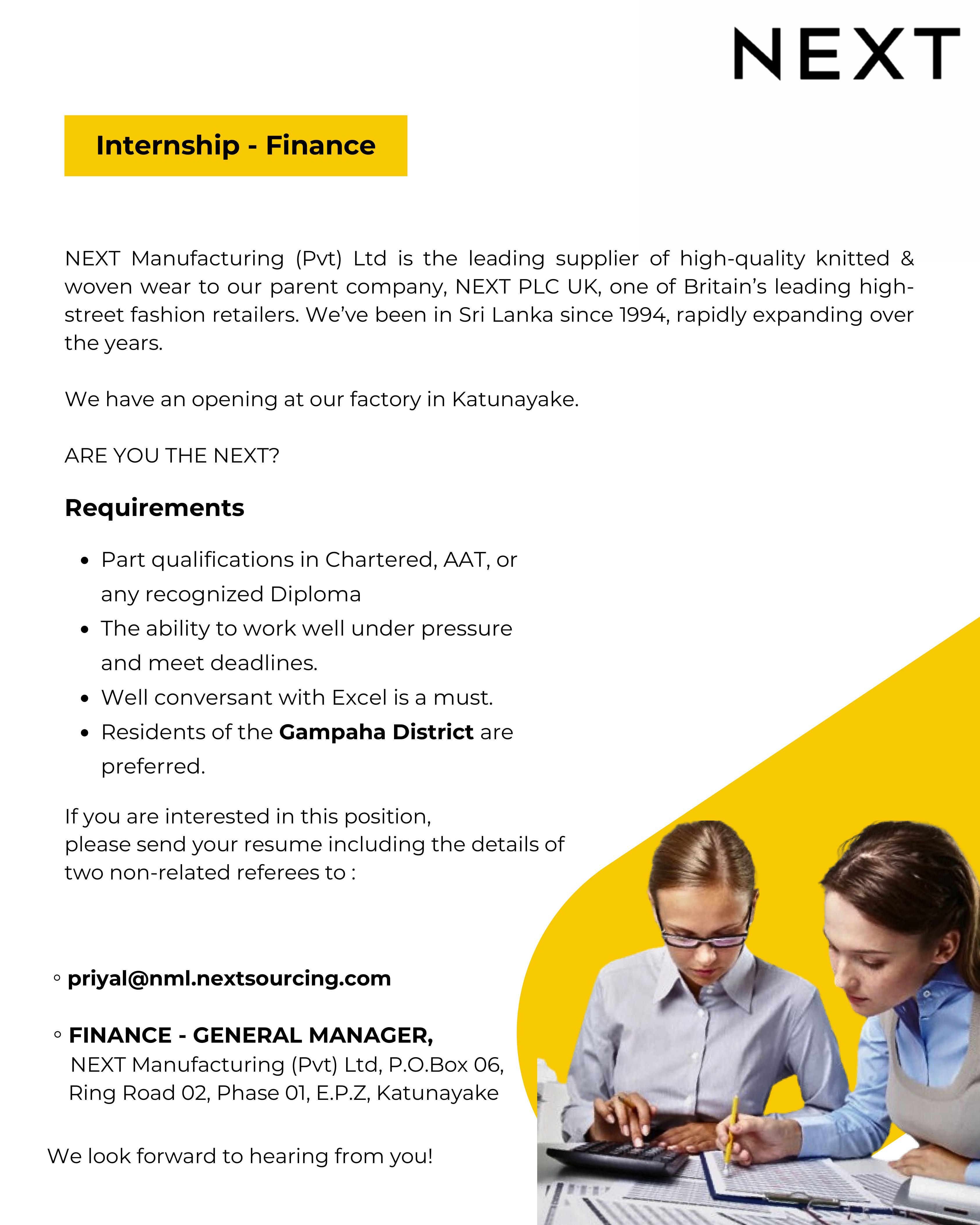JRN_2951 : Internship - Finance at NEXT Manufacturing (Pvt) Ltd
